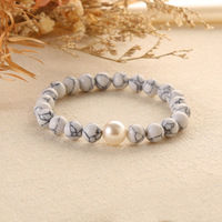 Pulsera de cuentas turquesa y Perla hecha a mano, elegante cordón elástico, joyería para mujer, colección de accesorios de moda ligeros de lujo