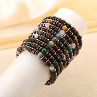Pulsera elástica de cuentas de madera marrón de diseño vintage, pulseras de cuentas de piedra natural de ágata de piedras preciosas de 6mm para hombres y mujeres