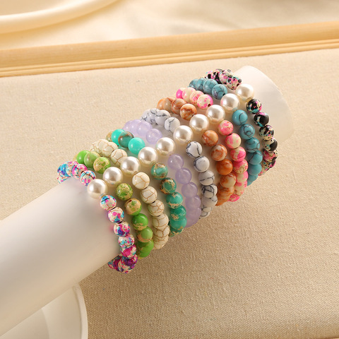 Toptan el yapımı takı taklit inci streç bilezik renkli 8mm turkuaz doğal taş boncuklu bilezikler kadınlar için hediye