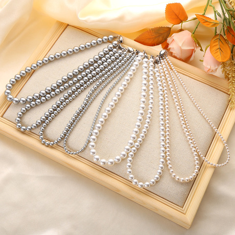 Moda tasarım takı 4mm 6mm 8mm 10mm yapay inci gerdanlık kolye yuvarlak inci boncuklu kolye kadınlar için hediye