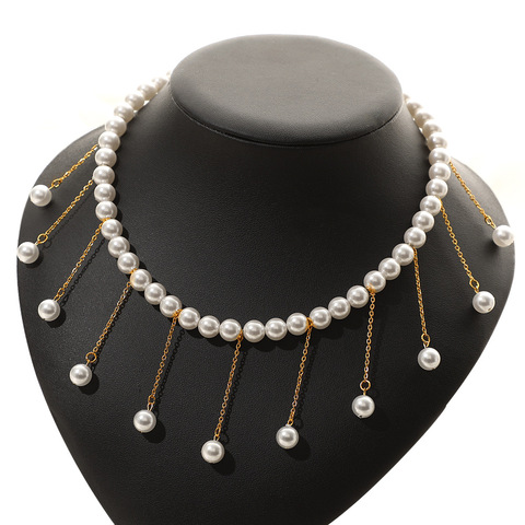 Lüks kadın parti takı paslanmaz çelik zincir püskül gerdanlık kolye cam imitasyon inci boncuklu kolye kadınlar için hediye