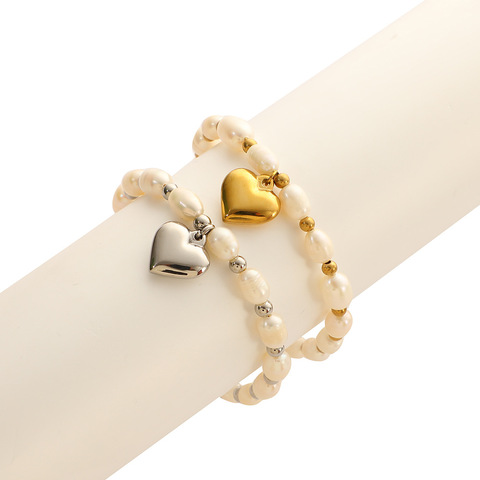 Sıcak satış moda kadınlar altın paslanmaz çelik kalp kolye zincir bilezik doğal tatlı su incileri boncuklu bilezikler