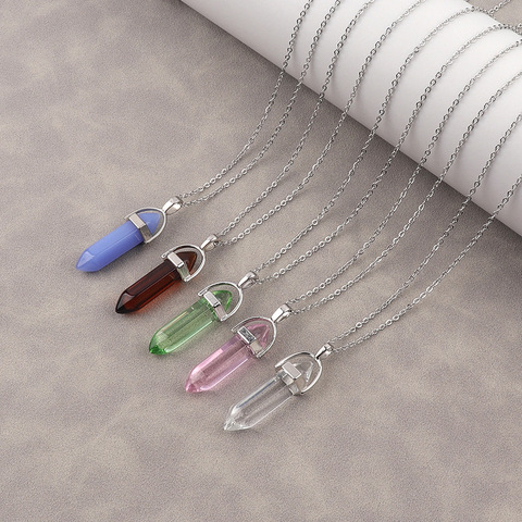 Kadınlar için renkli kristal noktası kolye kolye moda Bullet şekli taş takı paslanmaz çelik zincir ile