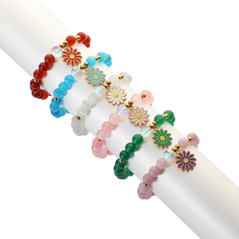 Moda kadınlar takı kristal akik doğal taş boncuklu streç bilezik renkli Metal çiçek kolye boncuklu bilezikler