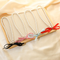Yay şerit gerdanlık kolye sahte inci boncuk ile kadınlar için Trendy katmanlı kısa kolye moda takı koleksiyonu